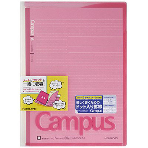 コクヨ キャンパスカバーノート(プリント収容ポケット付き) A4 ピンク ノ-621A-P