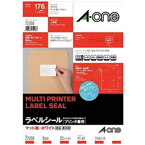 エーワン プリンタラベル 72208